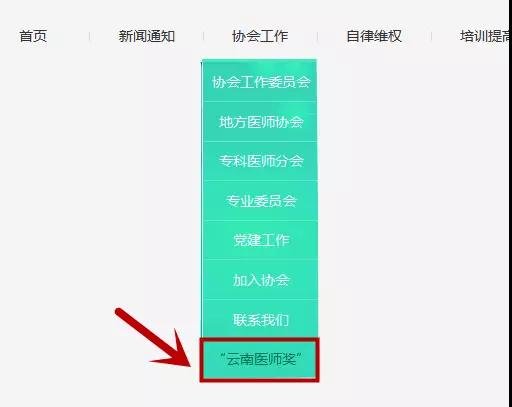 2、点击之后弹出绿色列表,然后点击“云南医师奖”即可查看。