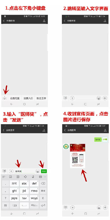 关注过“云南医师”的老用户:打开“云南医师”微信,在对话框输入“医师奖”,即可收到宣传页面。