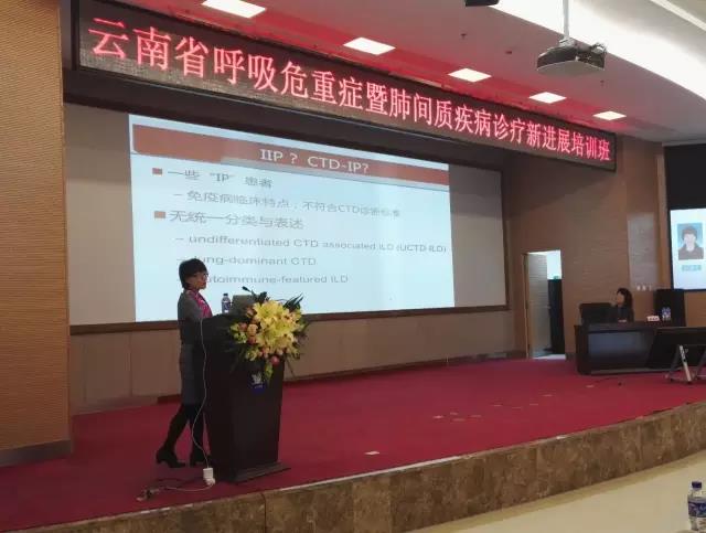 本次培训班邀请了中日友好医院的代华平教授,广州呼吸疾病研究所的罗群教授、曾庆思教授,上海肺科医院的李惠萍教授,华西医院呼吸科的金洪教授,北京协和医院的冯瑞娥教授、黄慧教授,中山大学附属孙逸仙医院的江山平教授,云南省第一人民医院的张云辉,昆明医科大学附属第二医院的董昭兴,昆明市第一人民医院的李梅华等多位专家。涉及的内容包括间质性疾病的指南解读、急性加重病因分析及治疗、影像诊断进展、病理诊断进展等诊疗新思路,还涉及了慢性过敏性肺炎、急性纤维素性机化性肺炎等这样在实际工作中严重困扰呼吸科医师的实际问题,对临床工作有很大帮助。