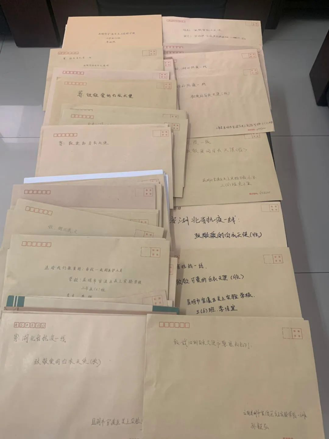 当祖国大地春暖花开之时,多希望全国人民都可以摘下口罩,尽情享受咱们曾经拥有的自由生活。当各省份的喜讯频传时,湖北的形势仍非常严峻。对此,在蔡朝东老师的倡导和帮助下,昆明市官渡区关上实验学校组织了一次“给湖北抗疫一线叔叔阿姨的一封信”征稿活动。在语文、美术老师组织指导下,孩子们积极参与,认真制作了精美的心愿卡,绘制了美术作品,写了书信,纷纷投递到学校邮箱,为全国防疫战尽一份力量!学校精心挑选了260份作品为代表,准备送到防疫一线工作人员的手中。