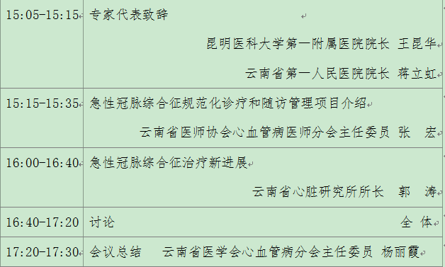 经研究,定于2016年2月在昆明金鹰广场酒店9楼 召开“急性冠脉综合征规范化诊疗及随访管理项目”启动会,特邀请您出席。会议议程详见附件。
