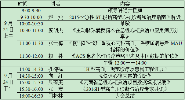 为响应国家卫计委号召,云南省医师协会心血管内科医师分与文山市人民医院于2016年9月24日在文山市联合举办心血管疾病诊疗规范化巡讲暨“云南省急性心肌梗死救治项目”网络救治定点文山市人民医院启动仪式。本会议邀请到云南省医师协会心血管内科医师分会巡讲团专家现场授课,旨在促进心血管医师在临床、科研、教学等方面的全面提高,并对网络医院授牌。现将相关事项通知如下: