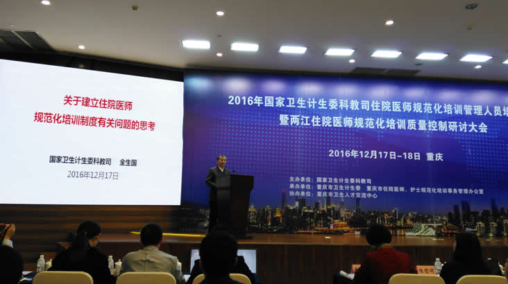 2016年12月16日—18日,国家卫计委科教司2016年住院医师规范化培训(住培)管理人员培训班暨两江住院医师规范化培训质量控制研讨大会,在重庆市政府雾都宾馆举办,云南省卫计委科教处和云南省医师协会住培管理人员一行3人,与来自国内31个省市自治区的200多名住培管理人员及领导参加了会议。