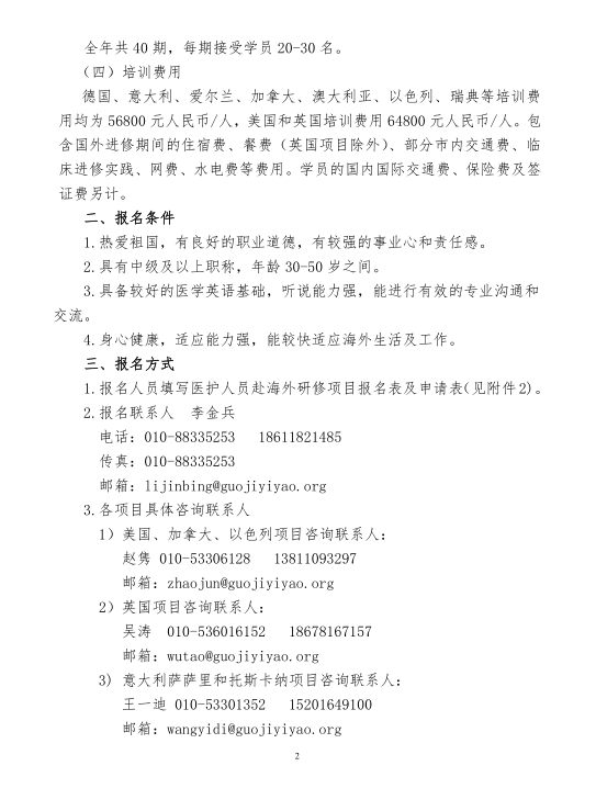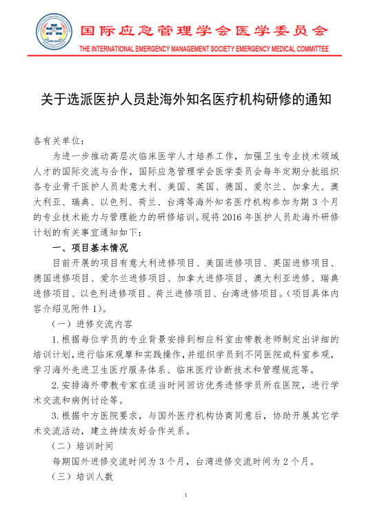 关于选派医护人员赴海外知名医疗机构研修的通知