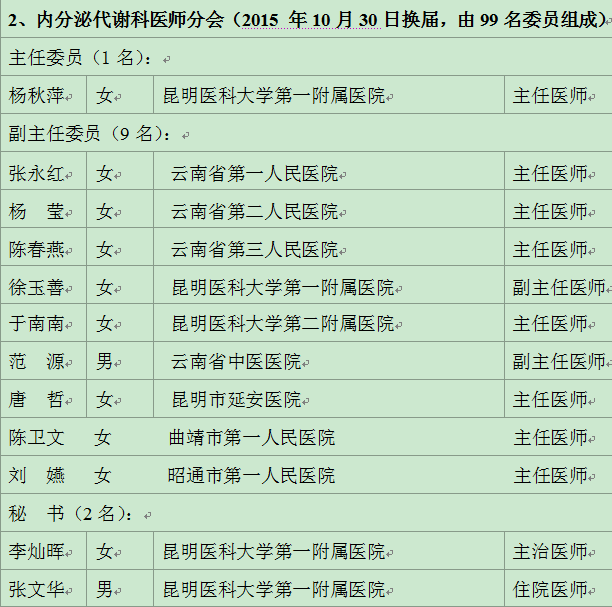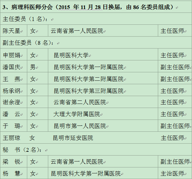 经云南省医师协会第二届三次理事会暨四次常务理事会、三次会长办公会议审议通过,新成立及已换届二级分支机构委员会选举结果如下: