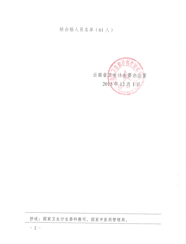 云南省卫生计委办公室关于公布2015年云南省住院医师规范化培训结业考核合格人员名单的通知