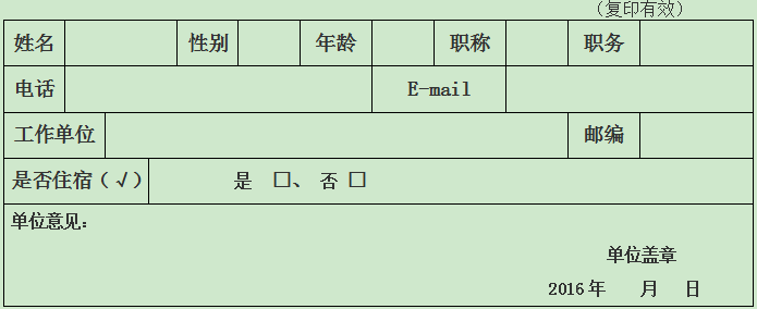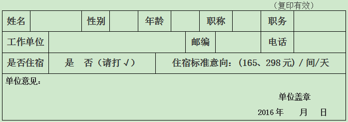 九、回执:凡参会的代表请务必详细填写代表回执卡,加盖单位公章后于 2016年5月30日前可用微信或电子邮件回复至200301144@163.com;微信号:170236834。无回执,恕不能保证食宿及学习班资料。